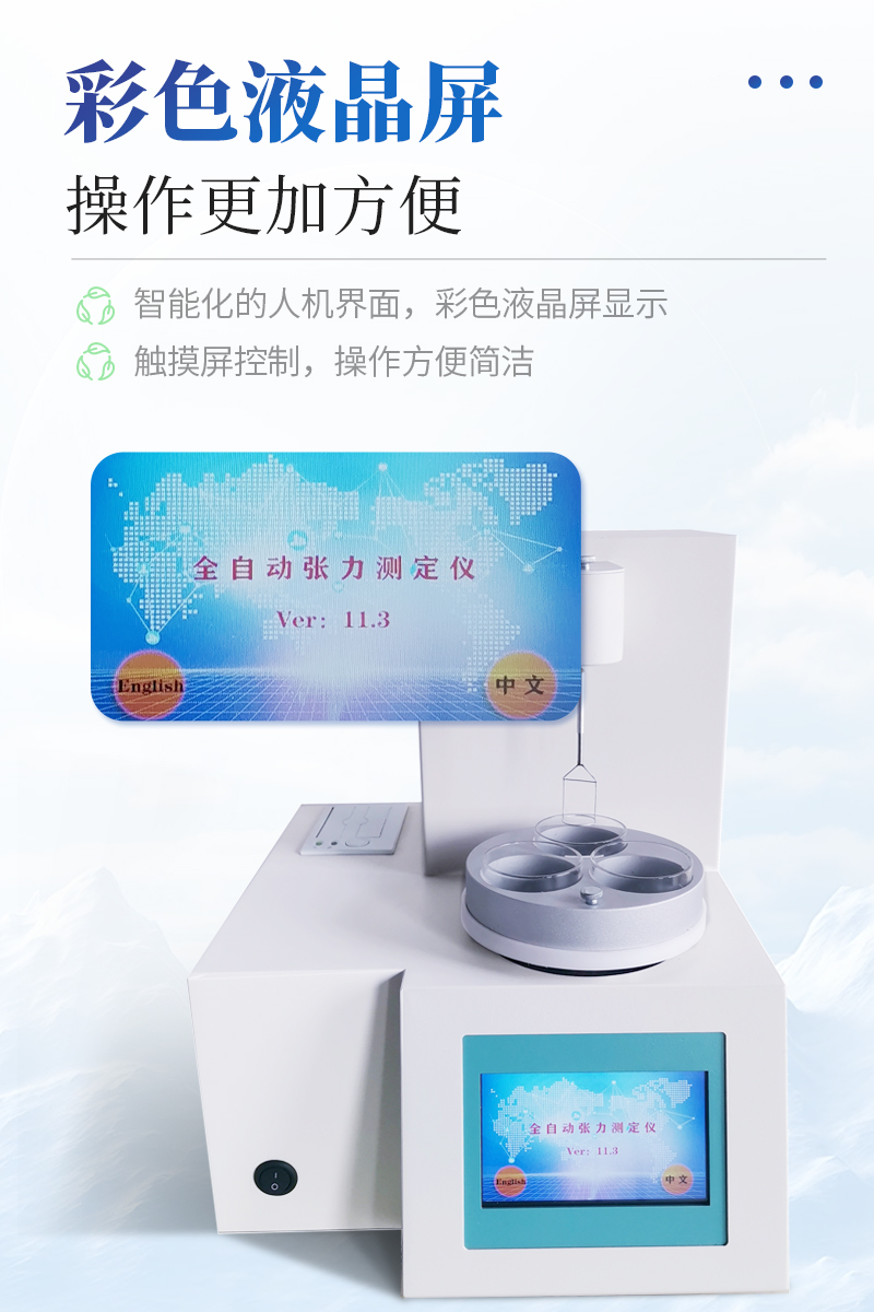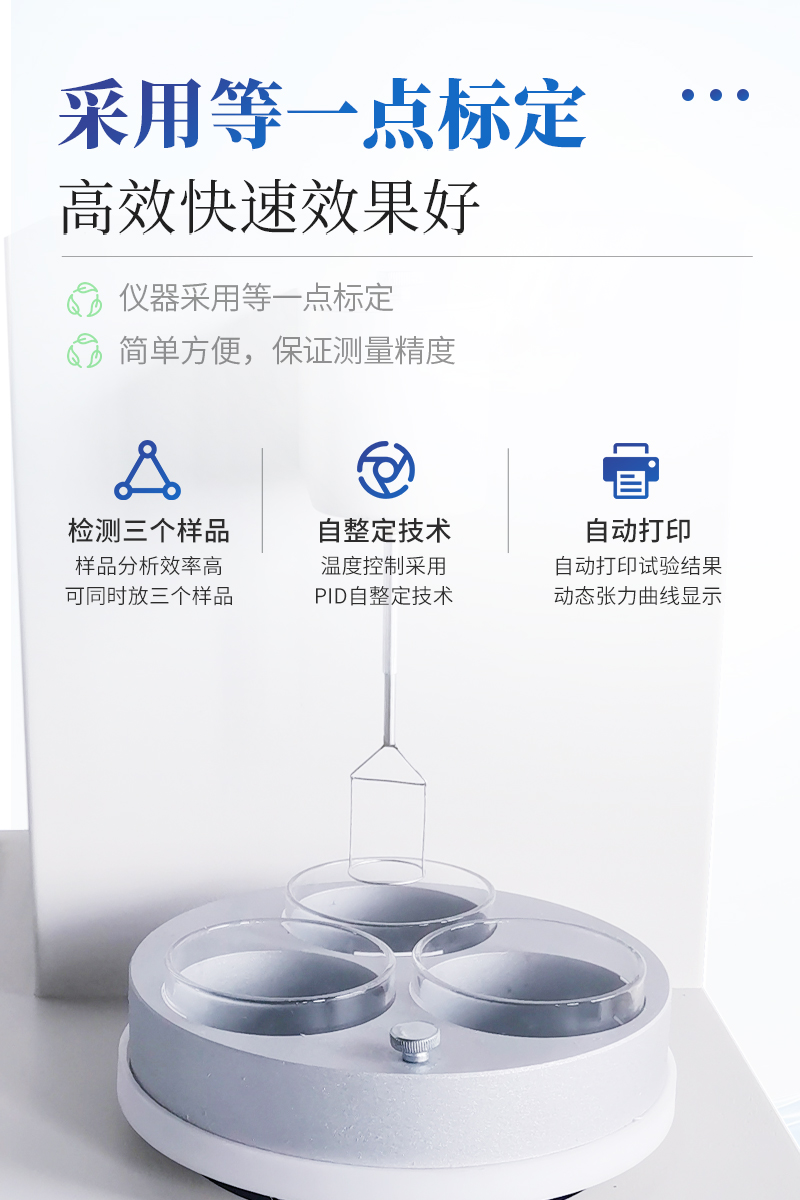 儀器特點★ 在正常環(huán)境溫度下,純水標定、油樣測試整個過程溫度控制在25±1℃?!?溫度控制采用PID自整定技術(shù)★ 樣品分析效率高,可同時放三個樣品★ 使用不同測量環(huán)儀器自動修正參數(shù)★ 自動打印試驗結(jié)果,動態(tài)張力曲線顯示★儀器采用等一點標定,簡單方便,保證測量精度;★高清晰彩色觸摸