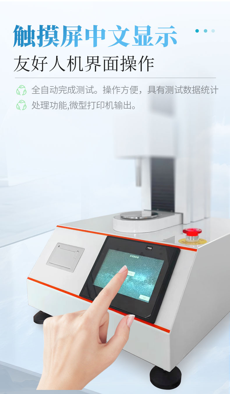 3、大觸摸屏中文顯示,友好人機界面操作。實時顯示測試曲線,全自動完成測試。操作方便,具有測試數據統(tǒng)計處理功能,微型打印機輸出。