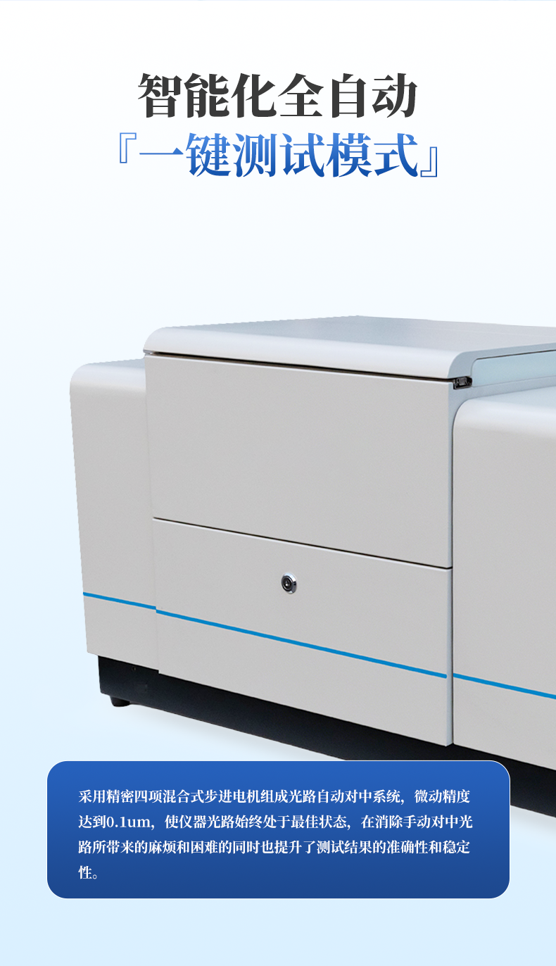 | 光路設(shè)計 | 采用會聚光傅立葉變換技術(shù),使散射光不受透鏡孔徑限制;采用雙譜面光路設(shè)計,有效擴(kuò)大測量范圍至1200微米;雙激光正交光路使用半導(dǎo)體輔助激光器測量側(cè)向散射0.0155度至164度,將測量范圍進(jìn)一步擴(kuò)展。 |